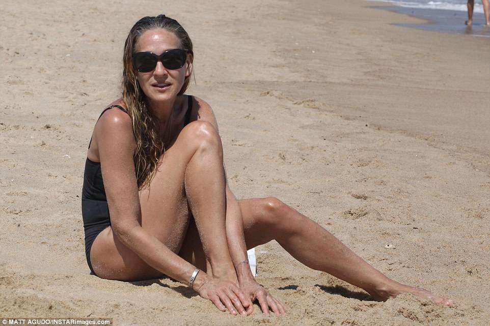 A atriz Sarah Jessica Parker exibiu boa forma durante ida à uma praia em Nova York. Aos 53 anos e apresentando um look básico composto por um maiô preto, óculos de sol e colar, ela aproveitou o dia ensolarado para pegar um bronzeado e ler um livro nas areias de Long Island.