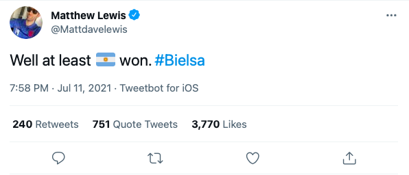 No dia 11 de julho, a Inglaterra perdeu a final da Eurocopa para Itália. No Twitter, o ator de Harry Potter publicou que “ao menos a Argentina venceu”, fazendo referência ao título da Copa América, disputado no dia 10 contra o Brasil.