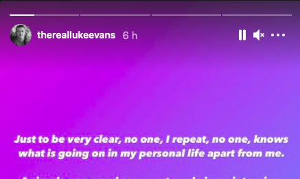“Apenas para ser claro, ninguém, eu repito, ninguém sabe o que passa na minha vida privada. Um simples comentário em uma entrevista não dá as revistas mais do que isso”, começou afirmando Luke Evans.