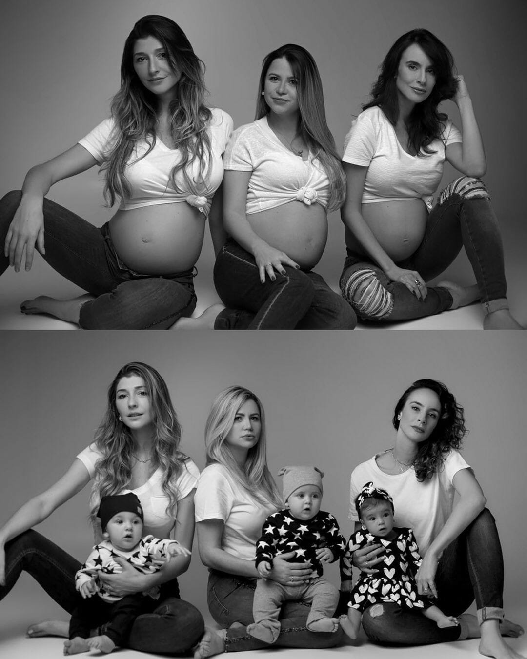Naiumi Goldoni, de Chiiquititas, celebrou a amizade com duas amigas de longa data em ensaio fotográfico antes e depois da gravidez.