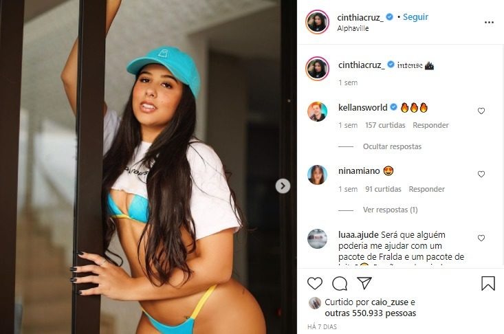 Na rede social, ela não tem medo de mostrar o corpo e atrai muitos elogios de seus mais de 13 milhões de seguidores.