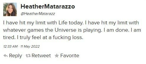 Conforme o BuzzFeed, em tuites desde então apagados, ela ameaçou desistir da vida, dizendo sentir-se “cansada” e “derrotada”.