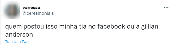 Um fã especificamente chamou-a de “tia do zap”, enquanto outra pessoa se perguntou se foi Gillian Anderson quem postou isso, ou se foi a tia dela.
