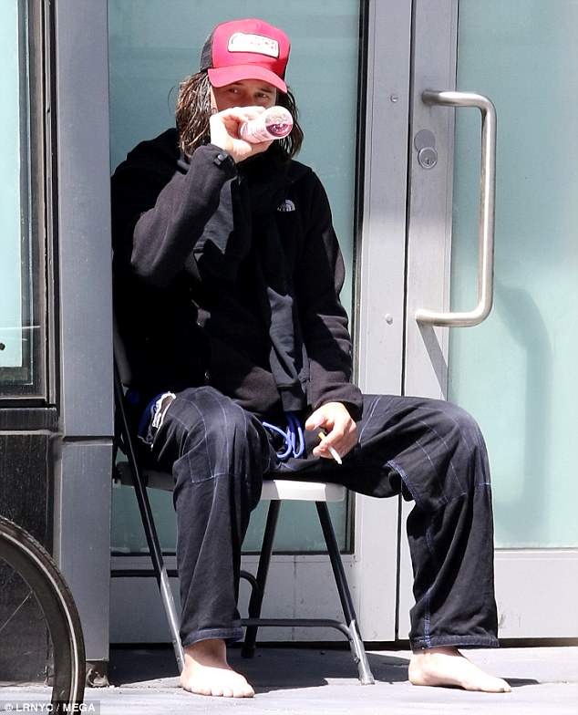 Confira mais abaixo fotos tiradas pelo Daily Mail durante um intervalo do ator, que vestiu boné, suéter e calça de agasalho (deixando os pés descalços) enquanto fumava um cigarro.