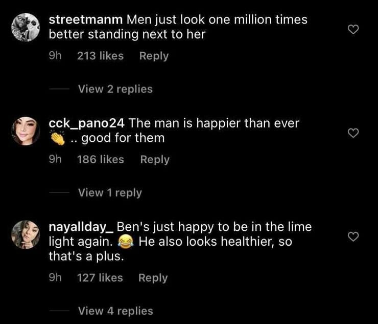 “Ben só está feliz em estar sob os holofotes novamente. Ele também parece mais saudável, então isso é um bônus”, disse outra fã.