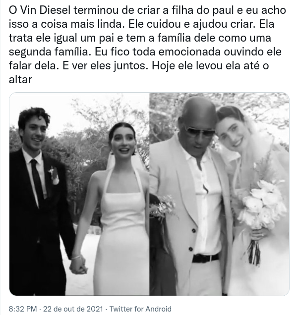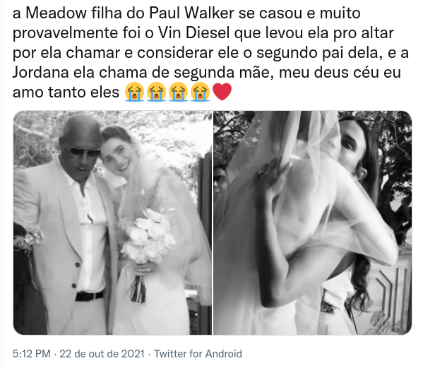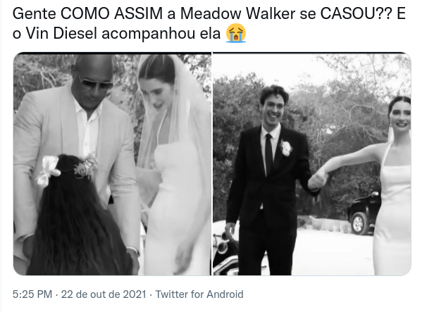 Confira abaixo a postagem de Meadow Walker no Instagram com algumas imagens de seu casamento. Mais abaixo, estão algumas reações dos internautas à cerimônia.