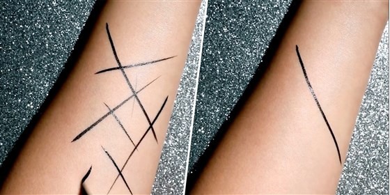 A imagem mostra produtos da Haus Laboratories usados no braço de alguém, mas claramente foram feitos na intenção de parecerem cortes feitos na pele.