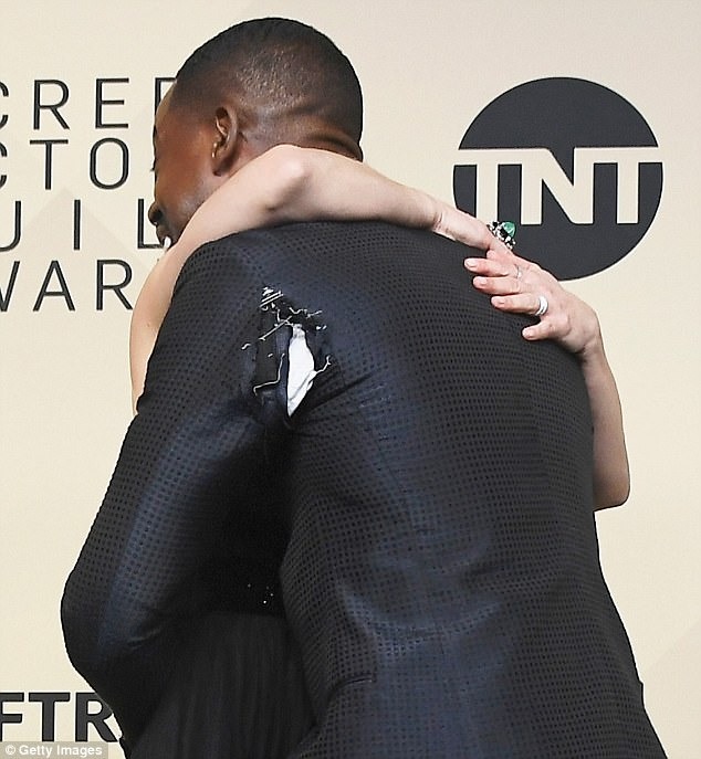 “Sim, eu rasguei! Está bem aqui”, disse ele em entrevista ao Entertainment Tonight, apontando para o rasgo (veja na foto mais abaixo). “Perdão, Sr. Armani, mas eu estava muito animado”.