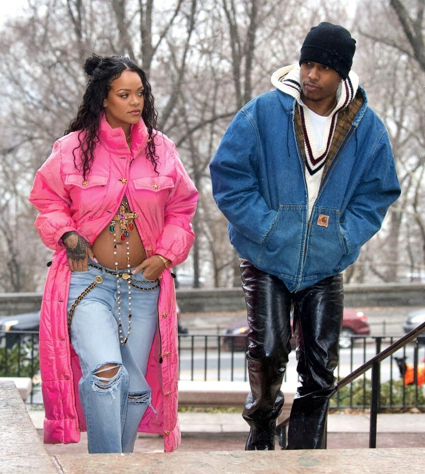Rihanna está grávida do primeiro filho. Ela atualmente namora o rapper A$AP Rocky. Ela apareceu com a barriga de fora em passeio pelo Harlem no último fim de semana.