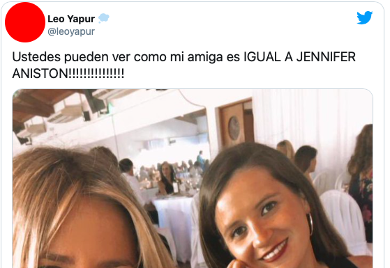 Tudo aconteceu após um tuíte de um amigo de Florencia Trossero. O internauta quis mostrar como a amiga dele “é igual a Jennifer Aniston”.
