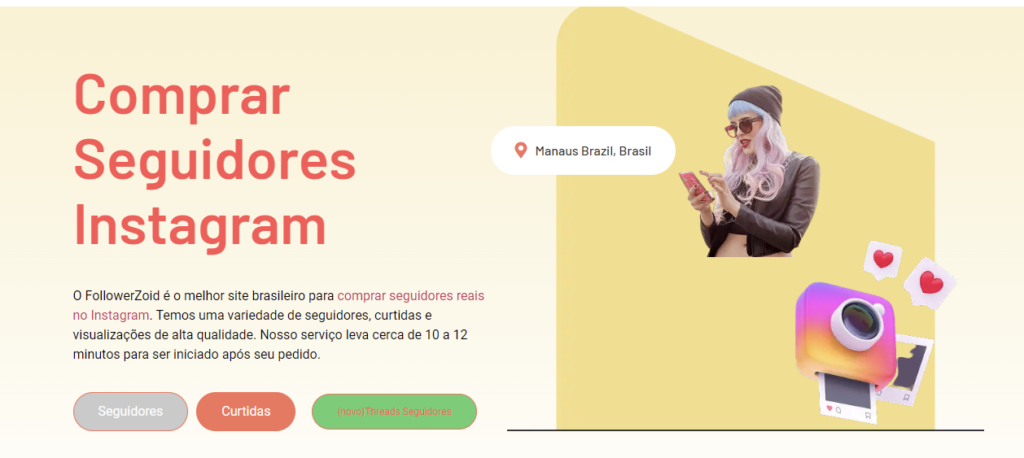 Vamos começar falando do Followerzoid, um dos melhores sites para comprar seguidores no Instagram. Essa plataforma oferece seguidores e curtidas para redes sociais, como Instagram, Facebook, YouTube e outras plataformas. A empresa afirma que seus seguidores são reais e ativos e de perfis brasileiros.