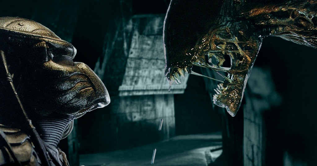 O crossover dirigido por Paul W.S. Anderson explora a ideia de humanos presos em uma batalha milenar entre Xenomorfos e Predadores. Apesar das críticas mistas, o filme estabeleceu oficialmente a união entre as duas franquias, mostrando como os Yautja utilizam os Aliens como parte de seus rituais de caça.