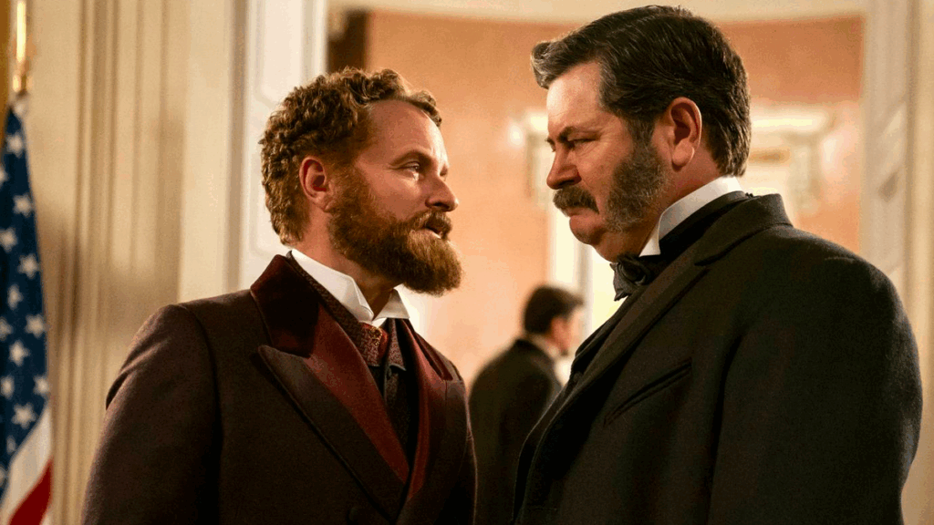 Makowsky constrói a narrativa como um duelo simbólico entre dois extremos: Garfield, o político idealista, e Guiteau, o fanático que acredita agir em nome de um “destino divino”.