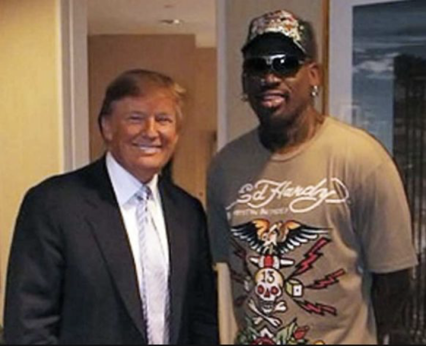 Dennis Rodman foi junto com o time de basquete americano, Globetrotters, em 2013 e assistiu ao jogo de exibição programado ao lado de Kim Jong-un, mesmo sem os Estados Unidos terem relação com a Coreia do Norte na época. Este evento antecedeu o encontro de Donald Trump e Kim Jong-un em 2018 e também a emblemática visita do presidente americano na época ao país asiático.