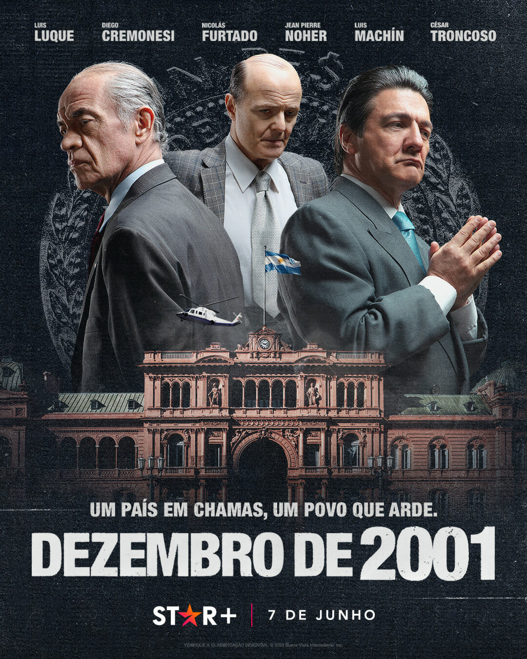 Composta de seis episódios de 40 minutos, “Dezembro de 2001” é uma ficção inspirada nos acontecimentos socioeconômicos que levaram a uma das crises mais profundas da história da Argentina no final de 2001. O thriller político segue Javier Cach (Diego Cremonesi), um ativista político que trabalha como assessor do Chefe de Gabinete durante o errático governo da Aliança. Ao longo da história, as convicções e desejos de Cach devem dar lugar às suas permanentes decepções com as práticas do governo, enquanto o país enfrenta uma das piores crises econômicas, políticas e sociais de sua história, com a renúncia antecipada de um presidente, a morte de dezenas de argentinos pela repressão policial, uma sociedade que teve suas economias confiscadas e o excepcional acontecimento histórico de cinco presidentes em uma única semana.