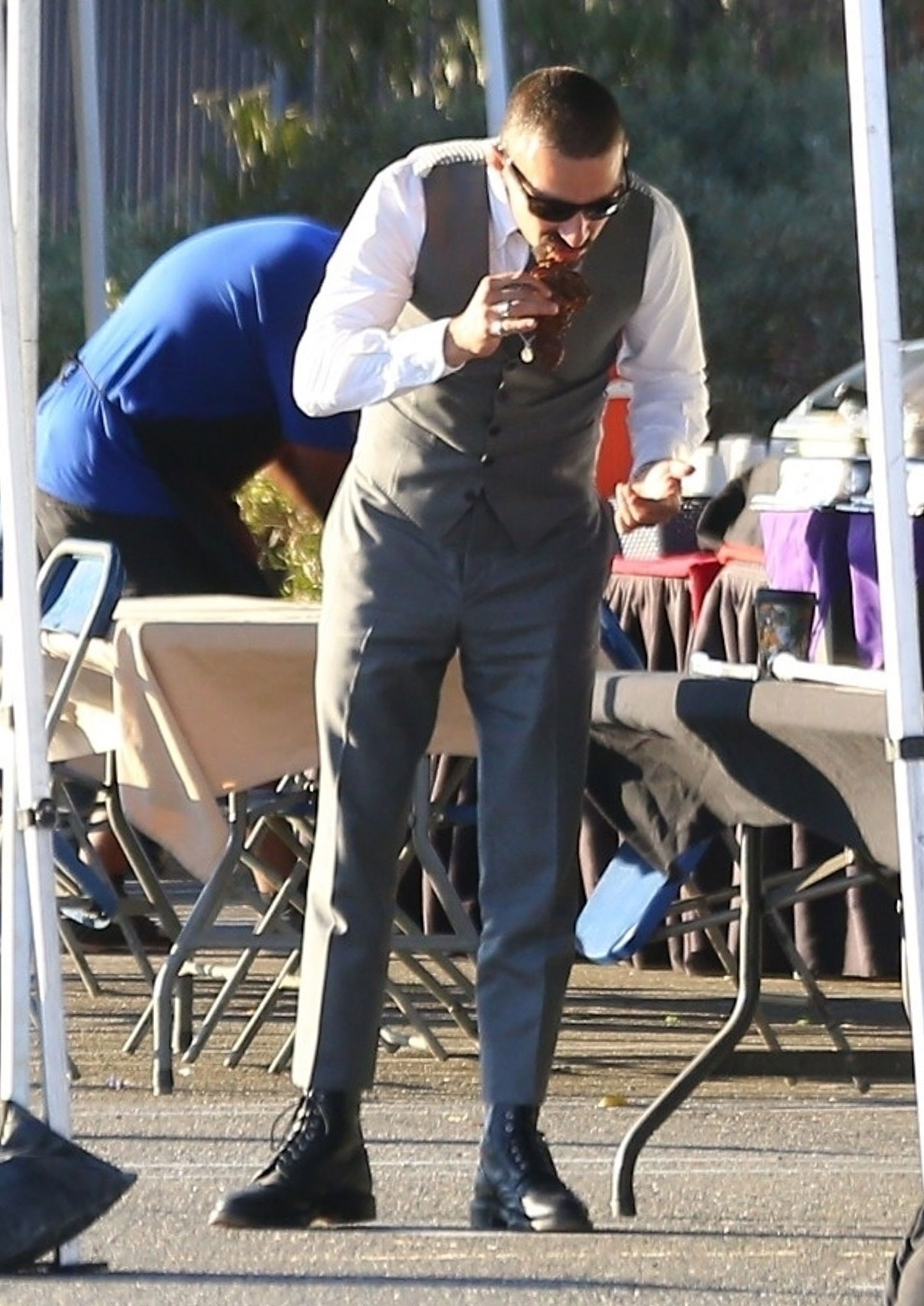 No intervalo das gravações, o ator é visto pegando um grande pedaço de carne com as mãos e se lambuzando com ele. Mesmo assim, Shia LaBeouf tem todo cuidado de preservar a roupa social que usava.
