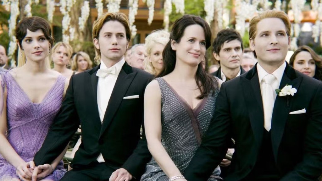 Se há algo pelo qual os filmes de Crepúsculo se destacam, é pela sua atmosfera única e pelo uso cuidadoso de cores e tonalidades para transmitir emoção e contexto. Desde os tons azulados e sombrios de Crepúsculo até os marrons quentes e terrosos de Lua Nova, cada filme capturou lindamente a essência da história de Stephenie Meyer. Eclipse seguiu uma paleta acinzentada que refletia a tensão crescente, enquanto Amanhecer – Parte 1 trouxe um vermelho profundo, simbolizando paixão e perigo, e Amanhecer – Parte 2 finalizou com tons dourados, representando esperança e renovação.