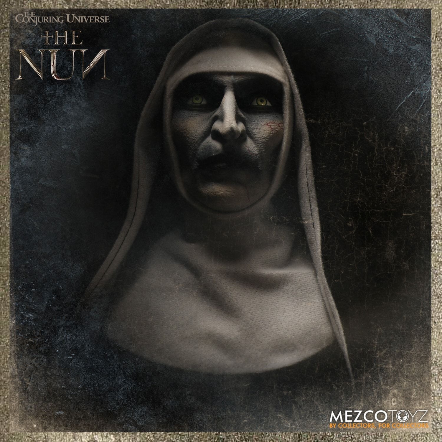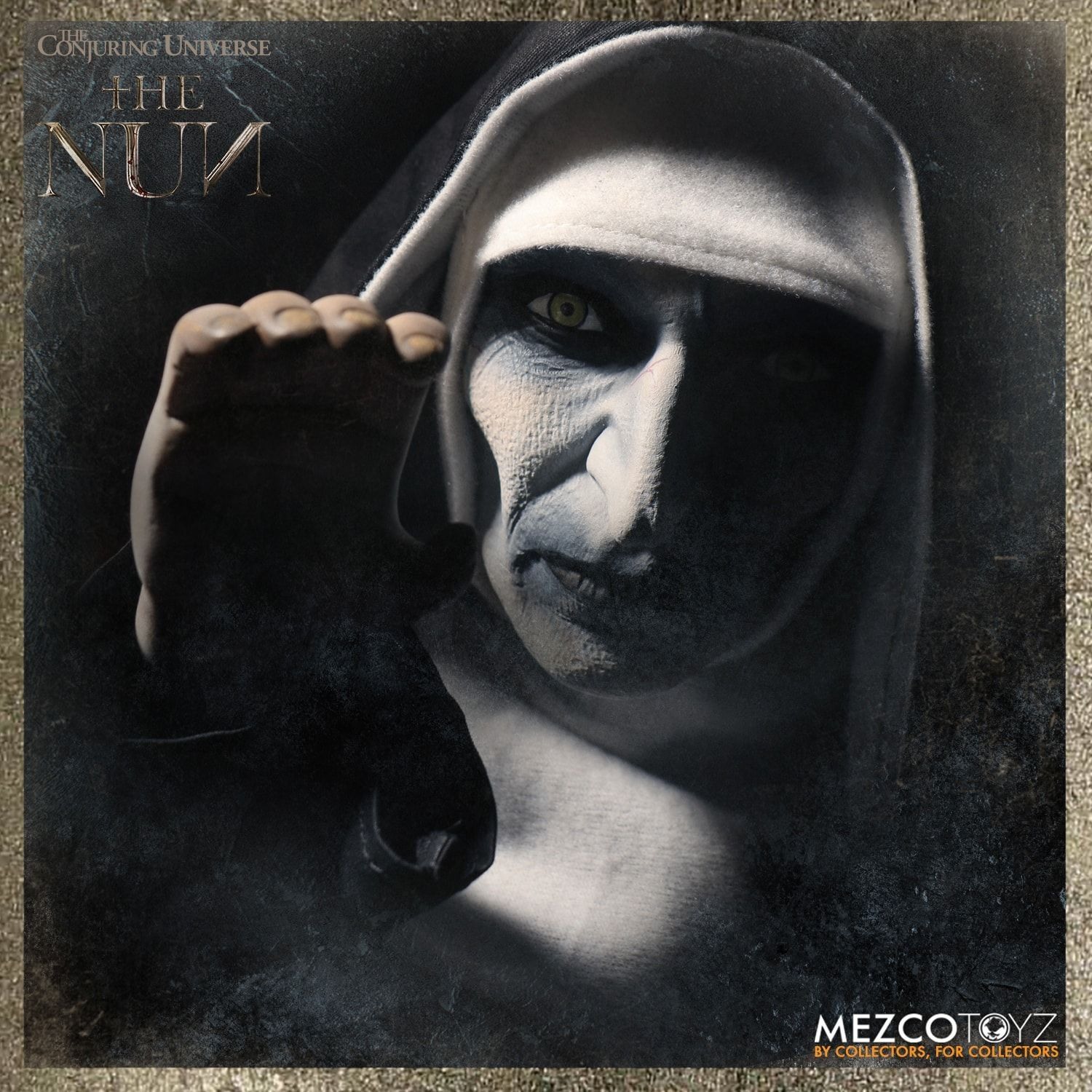 Apresentada pela primeira vez em Invocação do Mal 2, a freira foi recriada em uma boneca de aproximadamente 45 centímetros. Na descrição do produto, o artigo é definido como “tão assustador quanto no filme”. “Seus olhos brilhantes e penetrantes olham diretamente para sua alma e ela apresenta um traje preciso do filme completo com uma túnica, capuz e véu”, acrescenta a Mezco.