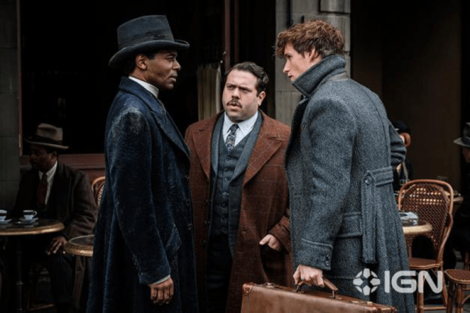A foto mostra Newt e seu amigo trouxa, Jacob, conhecendo o bruxo Yusuf Kama, um dos novos personagens que serão apresentados no longa. A cena desse encontro deve se passar em Paris, principal local no qual a história de Os Crimes de Grindewald será desenvolvida.
