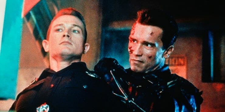 Após uma luta durante o filme inteiro, com o T-1000 parecendo ser indestrutível, o exterminador de Arnold Schwarzenegger consegue matar o rival com uma bazuca.