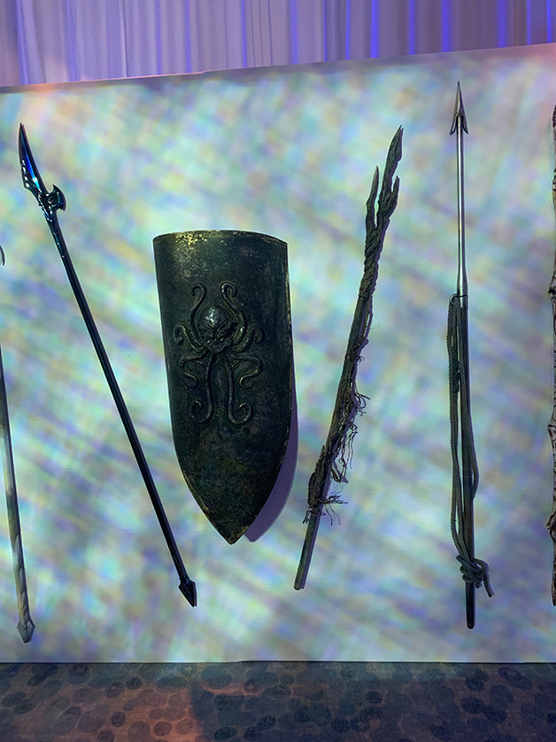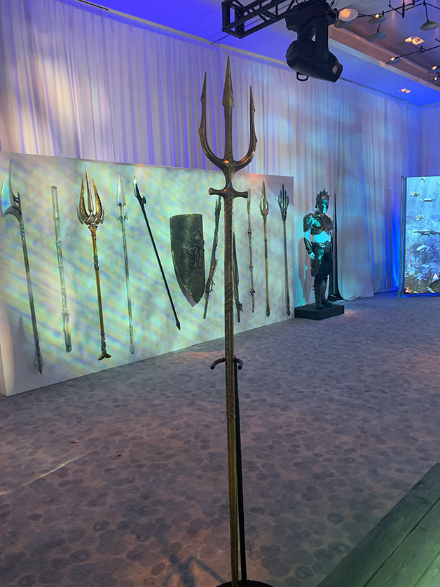 As imagens, que são de autoria do portal Heroic Hollywood, foram feitas em um evento para imprensa, nos Estados Unidos. Entre os destaques estão o uniforme de Vulko, personagem de Willem Dafoe, e o tridente do protagonista, vivido por Jason Momoa.