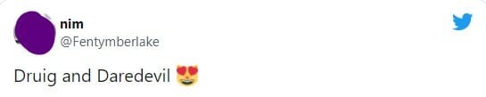 “Druig e Demolidor”, comentou uma fã. Já outra pessoa disse: “Queremos ver mais Demolidor no MCU”.
