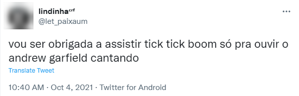 “Senhoras e senhores, Andrew Garfield cantando”, escreveu uma fã, que compartilhou a música na rede social. A canção de tick, tick… BOOM! também pode ser escutada aqui.