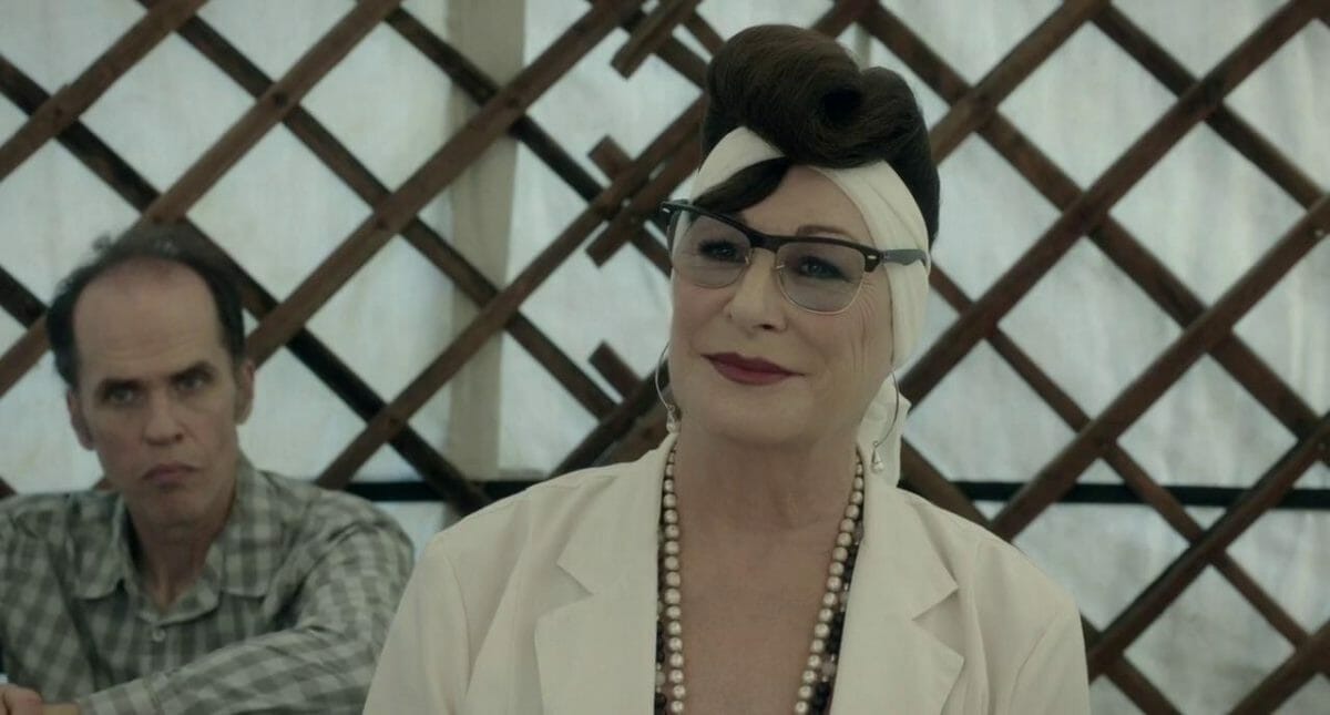 Anjelica Huston, a Mortícia de A Família Addams, também famosa por performances em John Wick 3 e Convenção das Bruxas, é Lily, a principal responsável pelo dia-a-dia do retiro.
