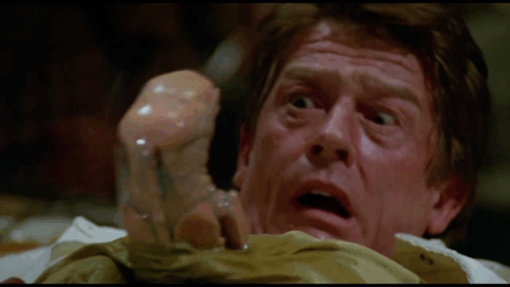 Sir John Hurt viveu Kane, vítima da icônica cena em que o alien sai de dentro de seu peito. É considerada até hoje uma das mortes mais emblemáticas do cinema.