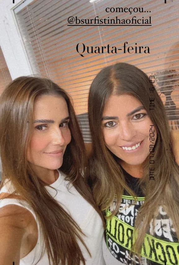 Deborah Secco já iniciou os preparativos para Bruna Surfistinha 2. Nesta quarta-feira (7), a atriz se encontrou com a ex-garota de programa Raquel Pacheco, que inspirou os filmes, e aproveitou para fazer um registro da dupla.
