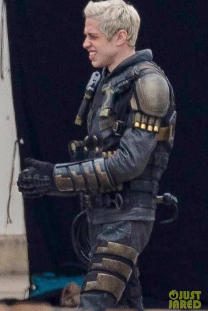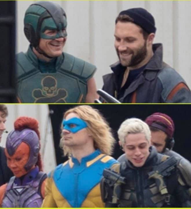 Elas revelam os bastidores das filmagens, assim como o visual bem cartunesco e colorido de alguns dos personagens, que incluem o retorno do Capitão Bumerangue de Jai Courtney e a apresentação de Nathan Fillion (Arm-Fall-Off-Boy), Pete Davidson (Blackguard), Michael Rooker (Savant), Flula Borg (Javelin), Sean Gunn (Weasal) e Mayling Ng (Mongal).