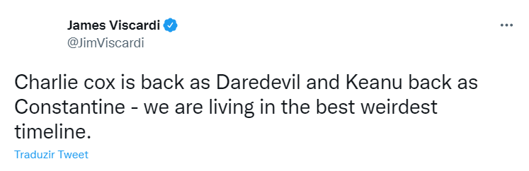 Outro comentário comemorou: “Charlie Cox está de volta como Demolidor e Keanu voltou como Constantine – nós estamos vivendo na melhor e mais estranha linha do tempo.”