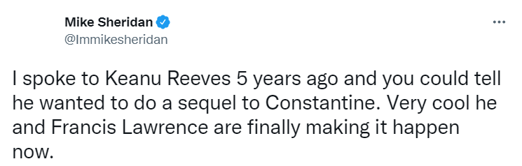 Um jornalista que já entrevistou Keanu comentou: “Eu conversei com Keanu Reeves 5 anos atrás e você podia ver que ele queria fazer uma sequência de Constantine. Muito legal que ele e Francis Lawrence estão finalmente fazendo isso acontecer agora.”