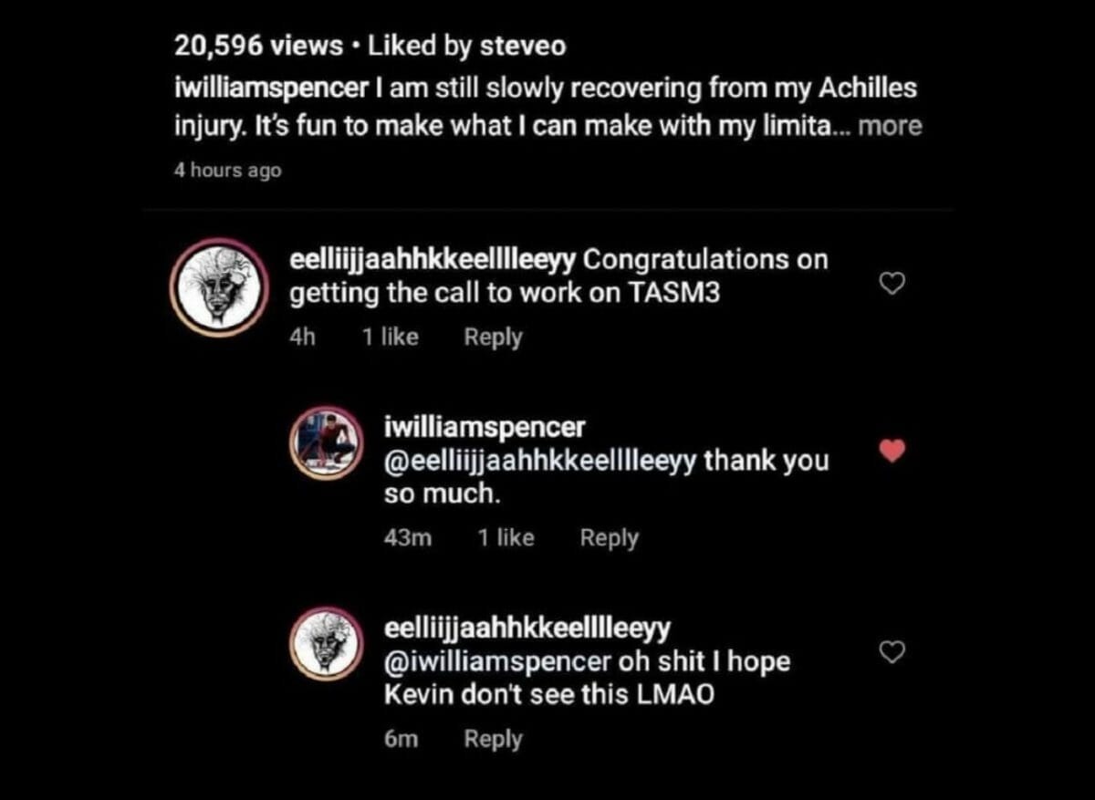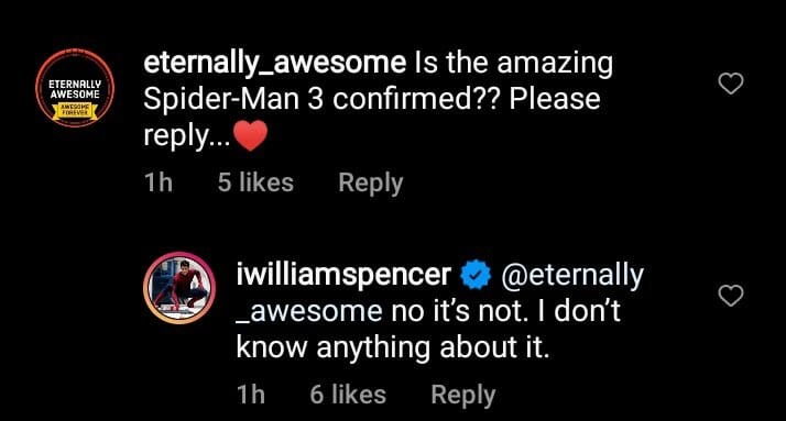 Quando um internauta, provavelmente brincando, o parabenizou por ter sido convidado para O Espetacular Homem-Aranha 3, o dublê agradeceu. Mais tarde, ele indicou que tinha entendido o comentário errado e esclareceu que não sabe se o projeto está em desenvolvimento.