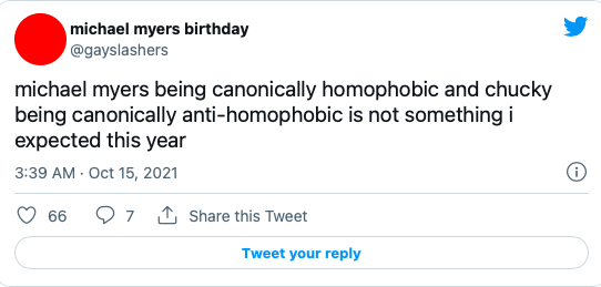 “Michael Myers sendo homofóbico e Chucky não sendo não era algo que esperava esse ano”, postou outro internauta.