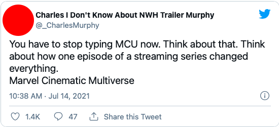 “Você tem que parar de digitar MCU agora. Pense sobre isso. Pense como um episódio no streaming mudou tudo. Multiverso Cinematográfico da Marvel”, escreveu um espectador de Loki.