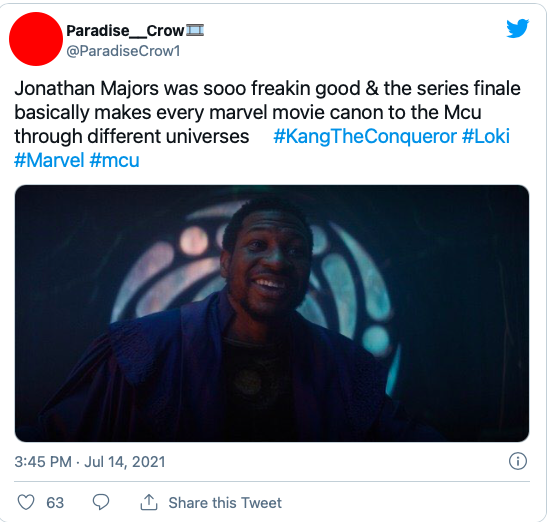 “Jonathan Majors (Kang) foi tão bom e o final de Loki faz basicamente todos filmes da Marvel canônicos no MCU a partir de diferentes realidades”, sugeriu ainda outro internauta.