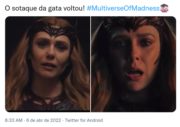 Confira abaixo algumas reações dos fãs ao retorno do sotaque de Sokovia da Feiticeira Escarlate em Doutor Estranho no Multiverso da Loucura (Doutor Estranho 2).