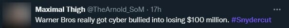 “A Warner Bros realmente sofreu bullying digitalmente e perdeu US$ 100 milhões”, tuitou outro fã.