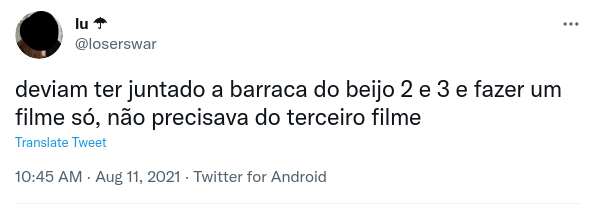 Uma fã chegou a dizer: “deviam ter juntado A Barraca do Beijo 2 e 3 e fazer um filme só, não precisava do terceiro filme”.