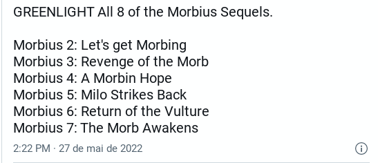 Até o momento, oficialmente, a Sony não deu nenhum sinal de que realmente pretende produzir Morbius 2.
