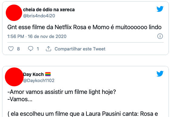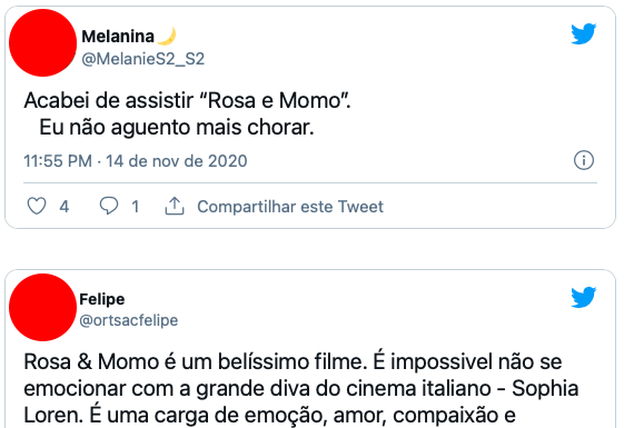 Rosa e Momo chegou à Netflix em 2020 e figurou entre os filmes mais assistidos pelo público brasileiro. Muitos assinantes da plataforma usaram as redes sociais para elogiar a trama sensível do longa.