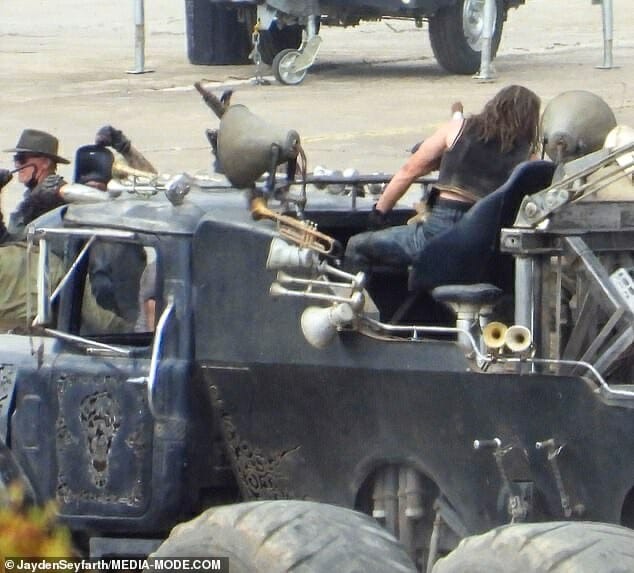 Novas fotos do set detalham o visual de Hemsworth, que será Dementus, o vilão que estará no encalço da Imperatriz Furiosa (via ScreenRant).