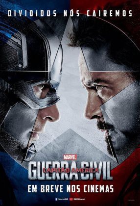 Foi divulgado pela Walt Disney do Brasil o primeiro cartaz nacional de Capitão América 3: Guerra Civil, que coloca Capitão América contra Homem de Ferro. “Divididos nós caíremos”, avisa a arte; veja mais abaixo.