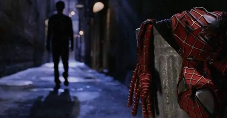 Uma das cenas mais icônicas de Homem-Aranha 2 é quando Peter Parker decide abandonar sua vida como Homem-Aranha, deixando seu traje no lixo. É claro que, mais tarde, ele acaba recuperando a roupa e voltando como super-herói.