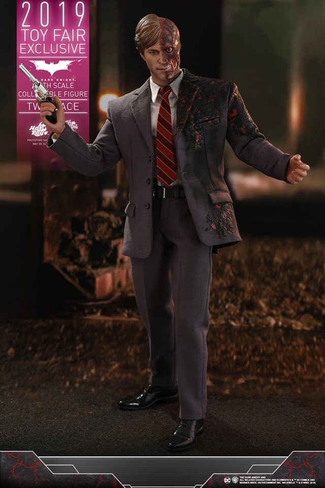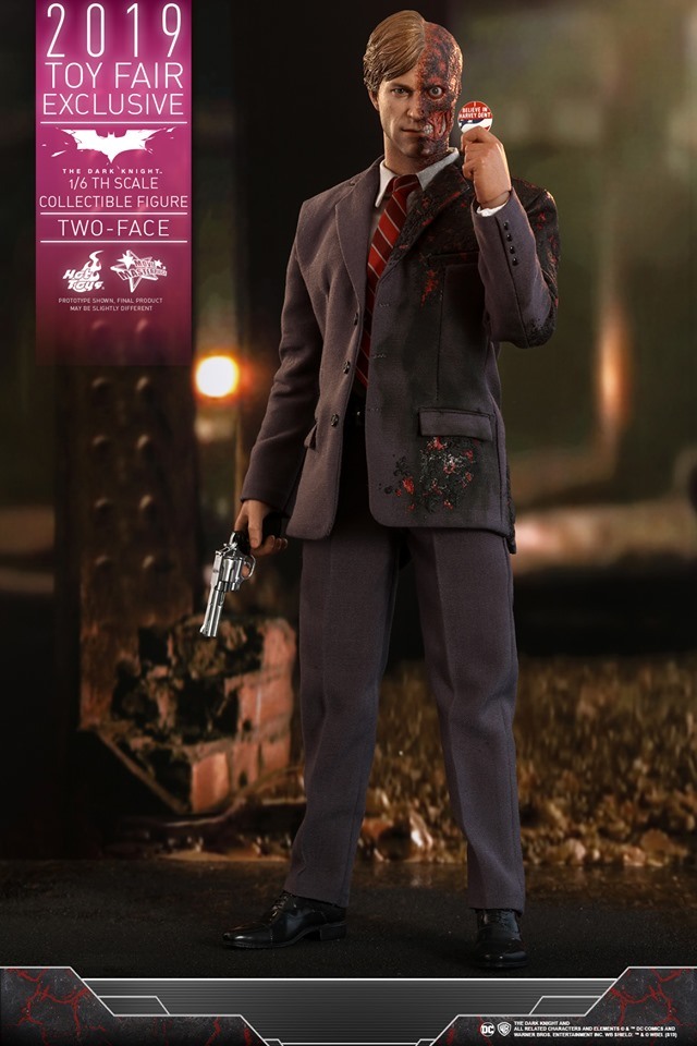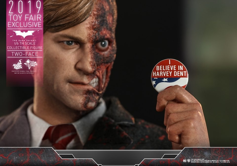 A estatueta é uma réplica quase perfeita do personagem vivido por Aaron Eckhart em Batman: O Cavaleiro das Trevas.