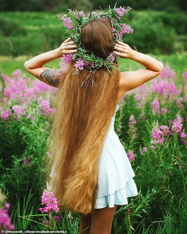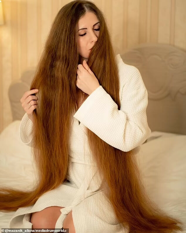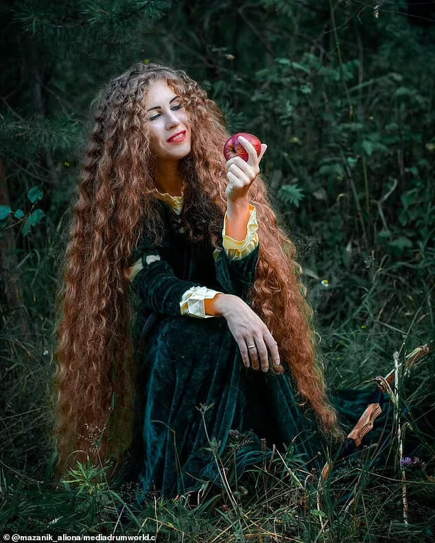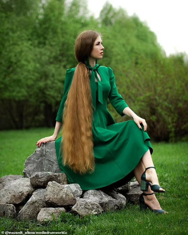Com 35 anos de idade, Alena Mazanik sempre teve cabelo comprido, mas desde 2011 ela o cultiva religiosamente para criar um visual no estilo da Rapunzel, de acordo com o Daily Mail.