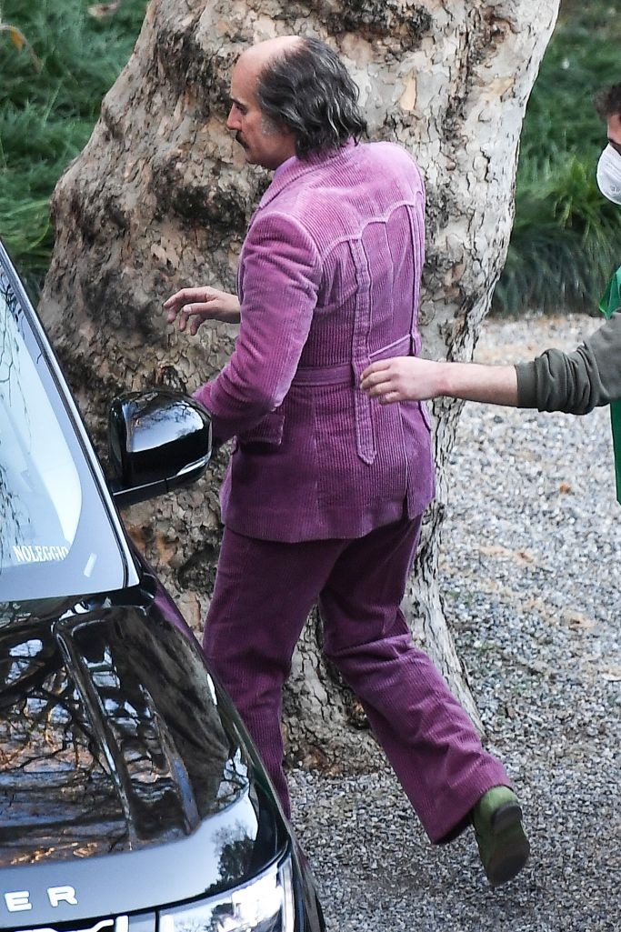 Jared Leto usava um terno de veludo cotelê roxo, que ele combinava com um par de sapatos verdes brilhantes e laranja. Você pode ver as imagens do set, divulgadas pela ET Canadá, abaixo.