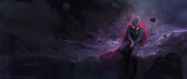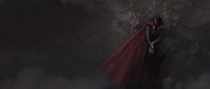 Primeiro, temos duas artes que mostram o Doutor Estranho após ser derrotado por Thanos em Titã.