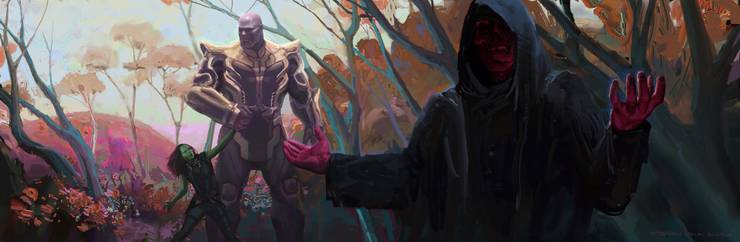 Depois, outras duas artes mostram que, inicialmente, a Joia da Alma estaria em um outro planeta, um pouco mais agradável e colorido, e não em Vormir.